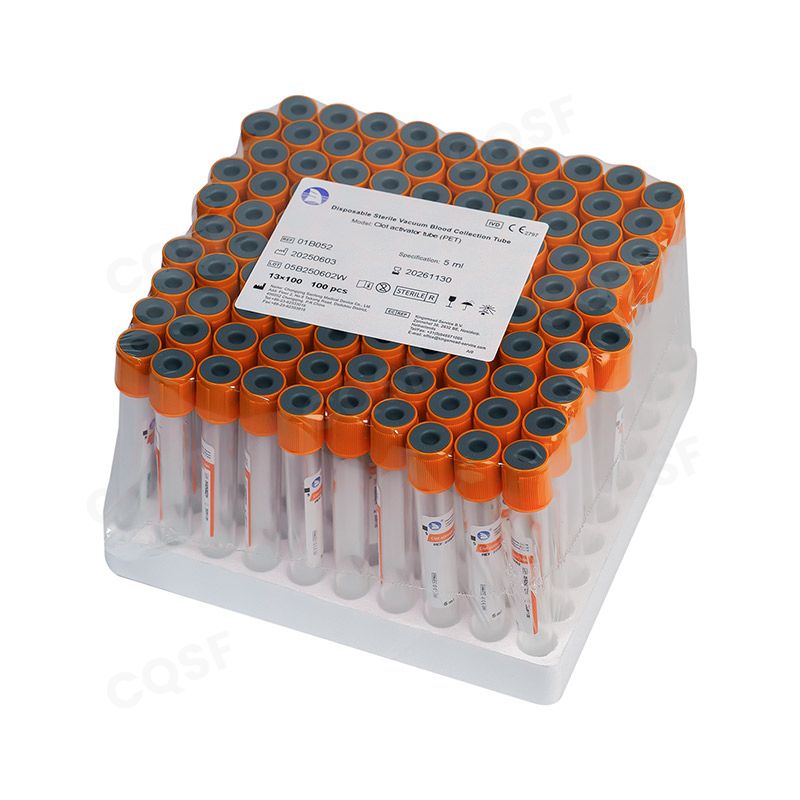 01B052 | Clot Activator Tube (PET) 5ml | Clot Activator | PET | 13*75,13*100 | Orange | Red | 100pcs*18racks | 515*370*290mm | |